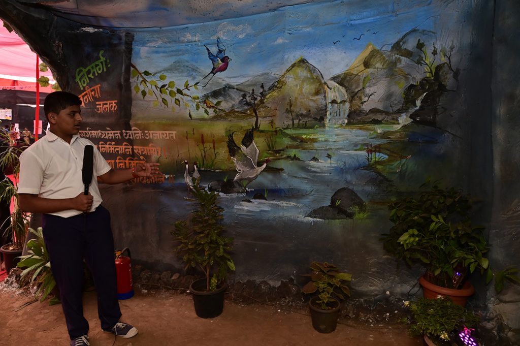 भाषेच्या उगमापासून , आरोळ्यांपासून , चित्रलिपीपासून आत्ताच्या तंत्रज्ञानातील भाषेपर्यंतचा प्रवास या प्रदर्शनात उलगडला. या प्रदर्शनाचे उदघाटन निवेदक सुधीर गाडगीळ यांच्या हस्ते झाले. भाषेचा उगम, भारतीय भाषा, जागतिक भाषा , संवाद माध्यम , भाषेचे खेळ, गमती , जमाती अशा विषयांवरचे कक्ष आणि विद्यार्थ्यांचे उत्तम सादरीकरण या मुळे या प्रदर्शनाची मजा उत्तम प्रकारे अनुभवता आली. या प्रदर्शनाची काही छायाचित्रे ….