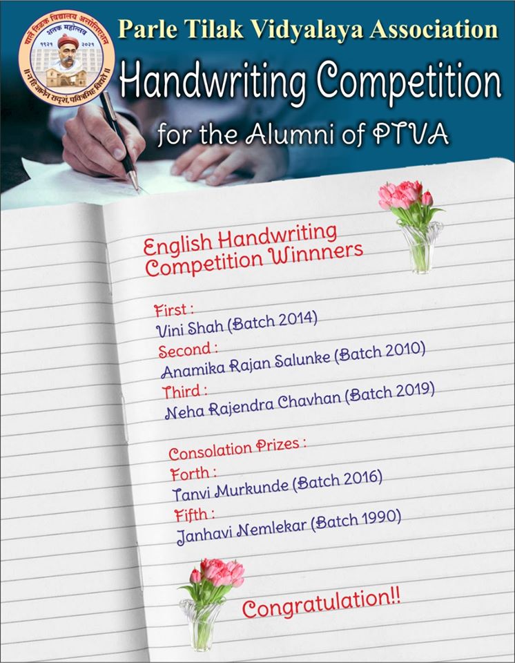 मराठी हस्ताक्षर स्पर्धा विजेते प्रथम क्रमांक :