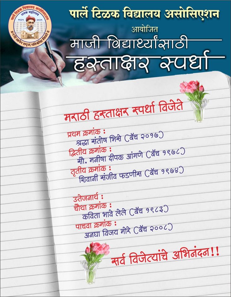 मराठी हस्ताक्षर स्पर्धा विजेते प्रथम क्रमांक :