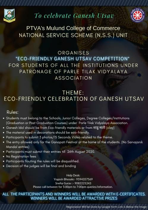 Mulund College of Commerce organises ECO friendly Ganeshotsav competition for the students of PTVA,