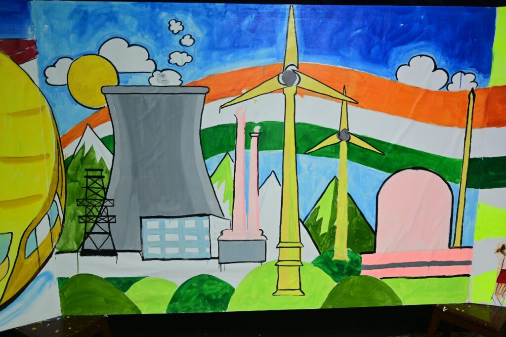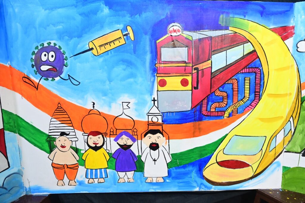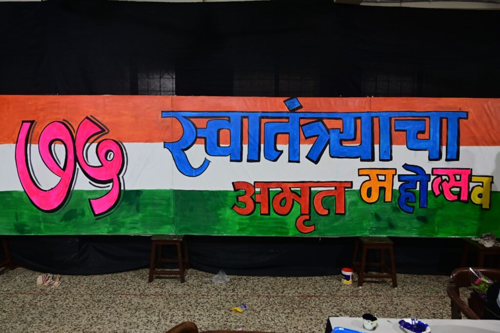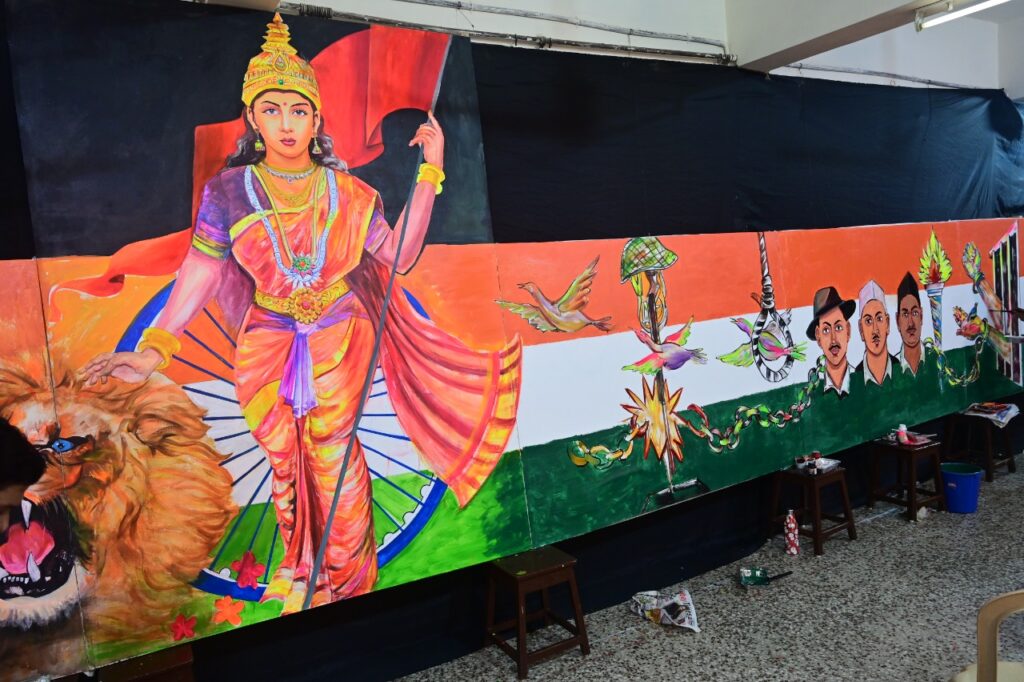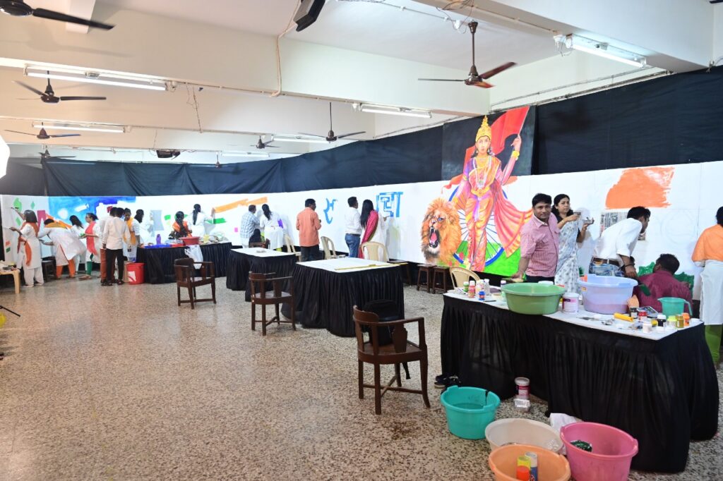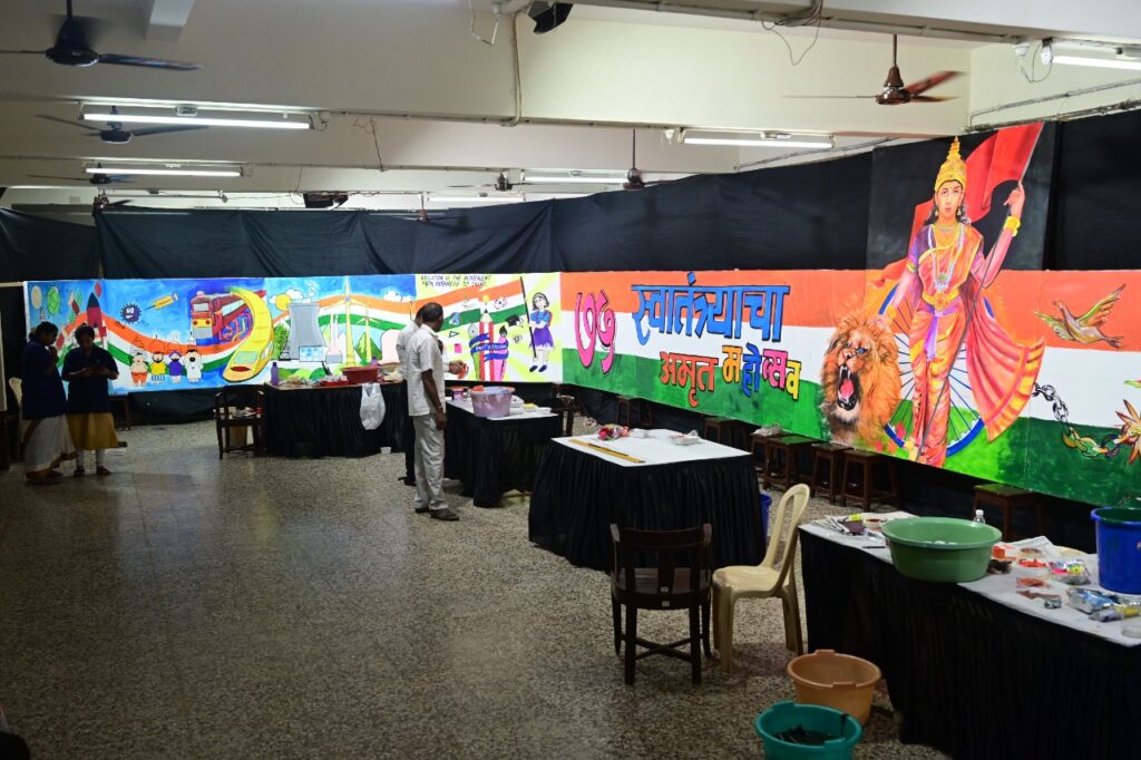 १५ ॲागस्टला सकाळी शाळांमधील झेंडावंदन झाल्यानंतर ठीक ९ वाजता कलाशिक्षकांनी ७५ फूट कॅनव्हासवर चित्रे रंगवायला सुरूवात केली. आणि पुढच्या ७५ मिनिटे न थांबतां ठीक १०.१५ वाजता सुंदर चित्र पूर्ण केले.