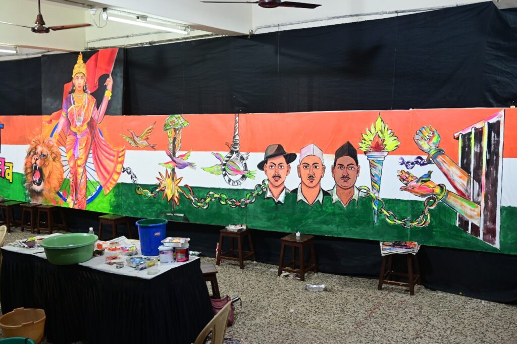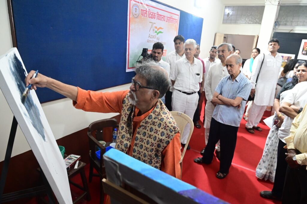 यामधे ८ कलाशिक्षक प्रमुख होते त्यांना इतर काही शिक्षकांनी मदत केली. पार्ले टिळक विद्यालयाच्या इंग्रजी माध्यमाच्या शाळेतील तळमजल्यावरील सभागृहात यासाठी ७५ फूट लांब आणि ५ फूट उंच कॅनवास लावण्यात आला होता. यांवर स्वातंत्र्य लढ्यांतील क्रांतिकारक, भारतमाता चितारण्यात आले. तसेच भारताने गेल्या ७५ वर्षात विज्ञान , तंत्रज्ञान, शिक्षण , वाहतूक अश्या विविध क्षेत्रात केलेली प्रगती निरनिराळ्या प्रतीकांतून दाखवण्यात आली आहे. याबरोबरच शेजारील हॅालमधे पाटिविअच्या शाळांमधील कला शिक्षकांनी ॲक्रेलिक रंगांत चितारलेल्या पेंटींग्जचे प्रदर्शन लावण्यात आले आहे. या प्रसंगी सर्व कलाशिक्षकांचा सत्कार आणि प्रदर्शनाचे उद्घाटन आंतरराष्ट्रीय ख्यातीचे चित्रकार श्री सुहास बहुळकर यांच्या हस्ते करण्यात आले. यावेळी बहुलकरांनी अवघ्या काही मिनिटात एक अतिशय सुंदर निसर्गचत्र सर्वांसमक्ष काढून चित्रकला शिक्षकांना प्रात्यक्षिकातून बहुमोल मार्गदर्शन केले.