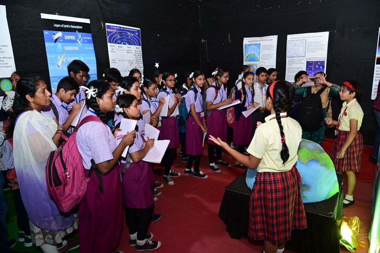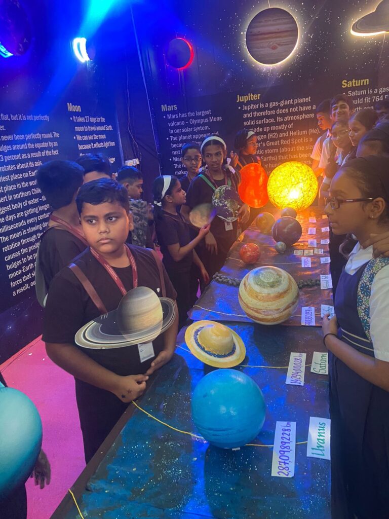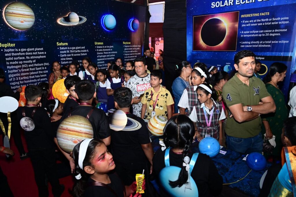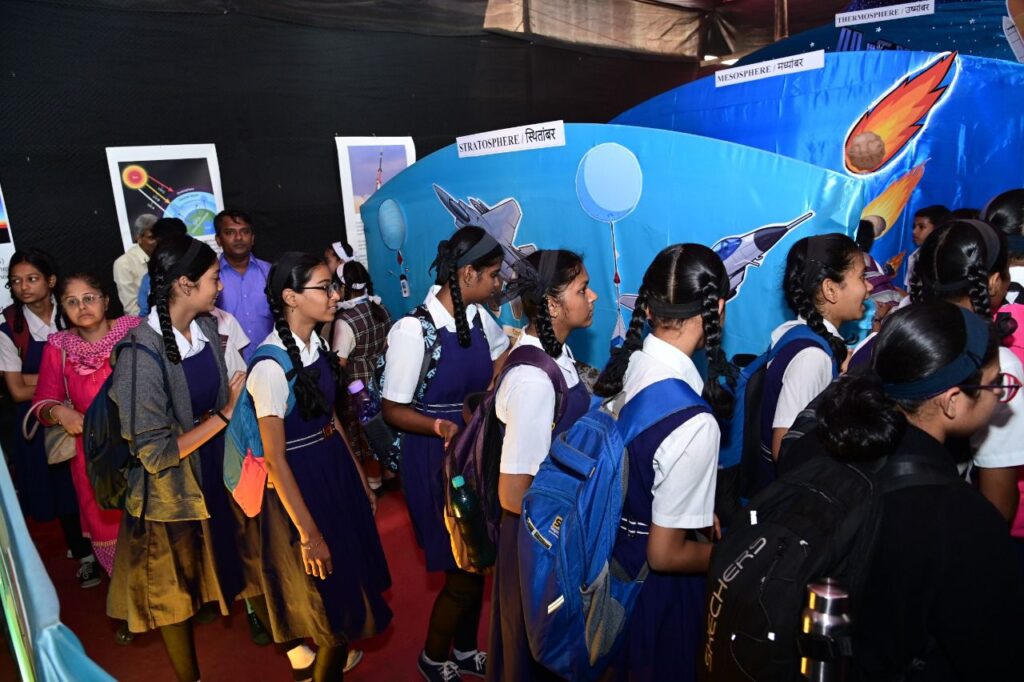 या प्रदर्शनात प्रशस्त अशी सात दालने होती. अंतरिक्ष अर्थात space याविषयाची सर्व माहिती विविध रंजक पद्धतीने विशद करण्यात आली. वातावरणाचे स्तर, आपली सूर्यमाला, ग्रह , तारे, नक्षत्र, आकाशगंगा याविषयी मॅाडेल्स, चार्ट्स, दृकश्राव्य माध्यमातून विस्तृत माहिती अतिशय रंजक पद्धतीने देण्यात आली. याशिवाय अवकाशयानातून दर्शकांना अवकाश भ्रमणाचा अनुभव देण्यासाठी अतिशय कल्पकतेने अवकाशयानाची मांडणी करण्यात आली होती.तर अंतराळवीराचे अवकाशातील जीवन कसे असते? दिनक्रम कसा असतो हे सर्व अवकाशयानाच्या आतील रचनेतून विद्यार्थ्यांना अनुभवता आले. याशिवाय भारतीय प्राचीन साहित्याचे अवकाशासंदर्भातील योगदान या विषयी कित्येक संदर्भ स्पष्ट करणाऱ्या चित्रफितीचे दर्शकांनी कौतुक केले. दोन दिवस हे प्रदर्शन सर्वांना पाहण्यासाठी खुले होते . सुमारे दहा हजाराहून अधिक विद्यार्थी,पालक आणि नागरिकांनी प्रदर्शनाला भेट दिली. बोरिवली, गोरेगाव इ ठिकाणच्या शाळांतून शिक्षक व विद्यार्थी हे प्रदर्शन पाहण्यास खास आले होते.