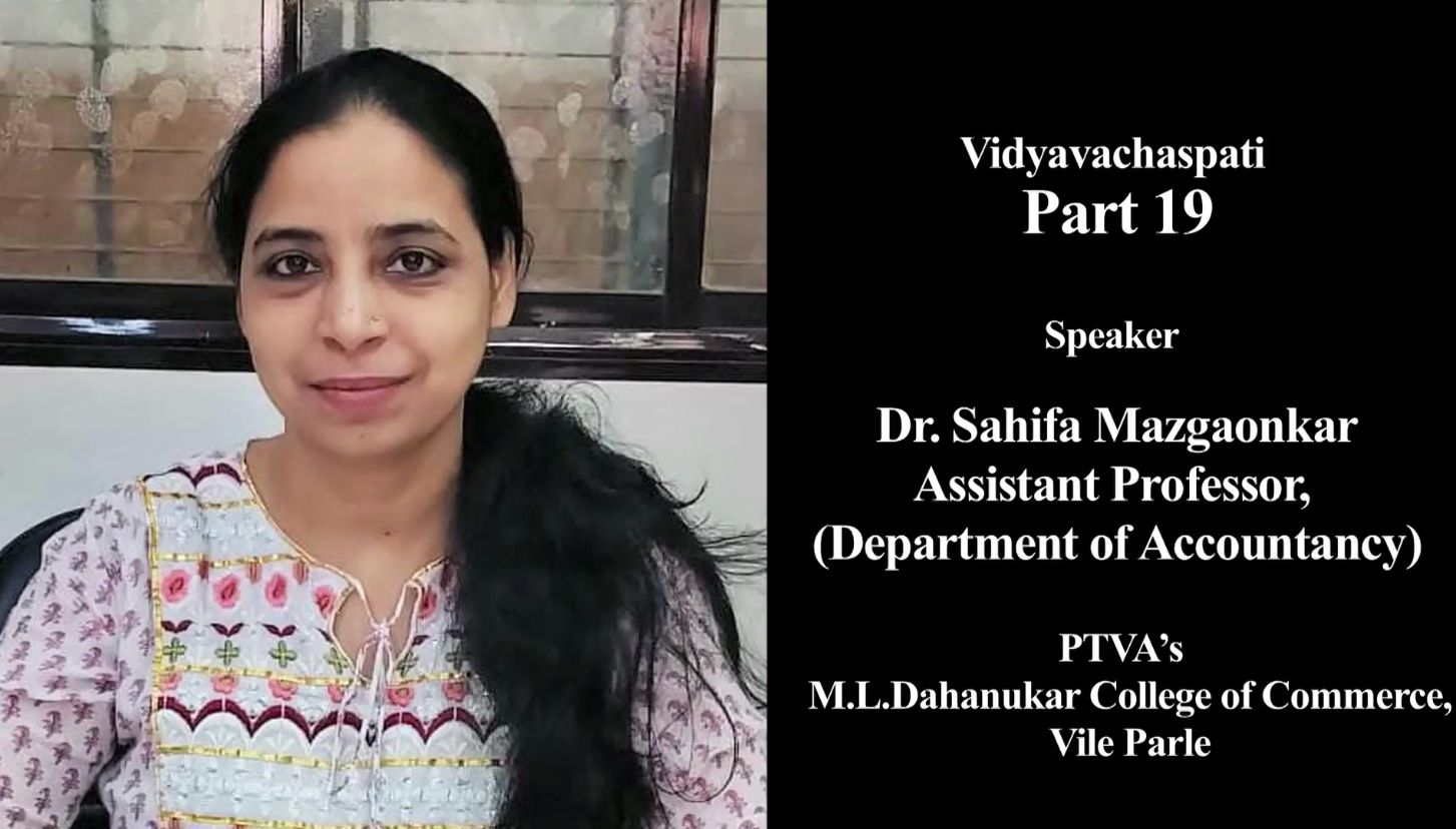 Dr. Sahifa Mazgaonkar faculty at MLDC speaks on Human Resource Accounting: A Tool to Evaluate Human Capital Among College Teachers In Mumbai in Vidyavachaspati part19 on Saturday 9 March 2024 at 9.00 AM on PTVA’S YouTube Channel .