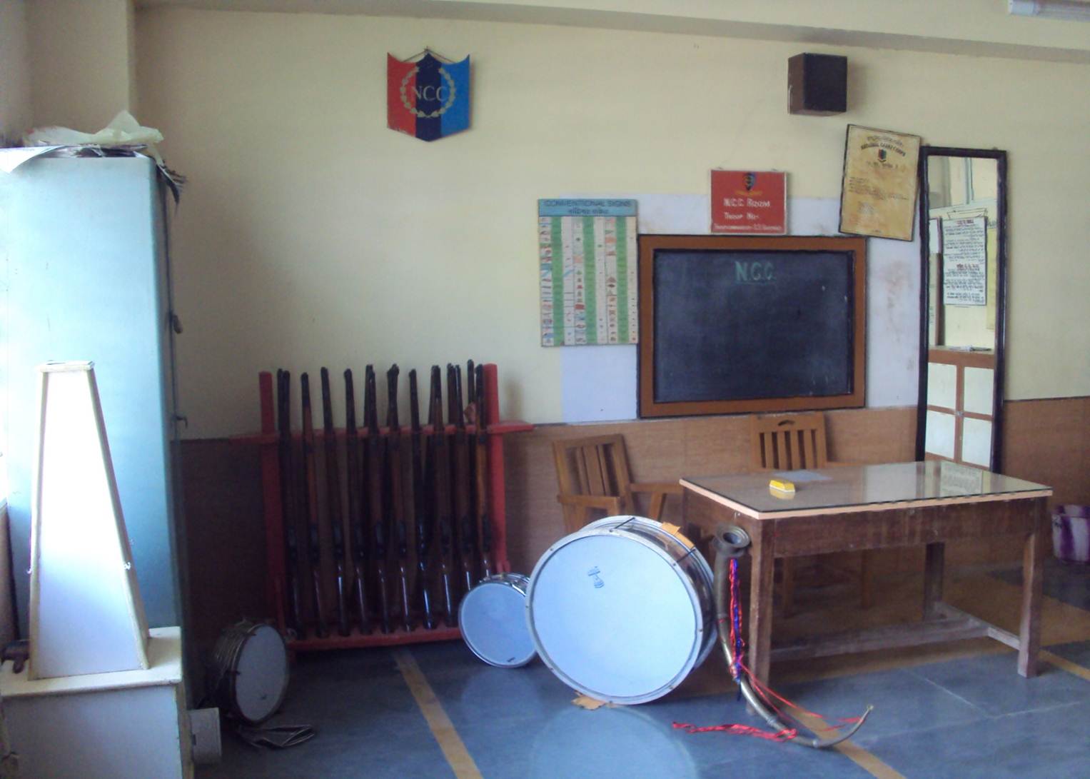 एन.सी.सी. विद्यार्थांचे गणवेश ठेवण्यासाठी कपाटे. सैन्यात पराक्रम गाजविलेल्या माजी विद्यार्थांचे फोटो. रायफल्स, नकाशे, तक्ते इ. साहित्य.